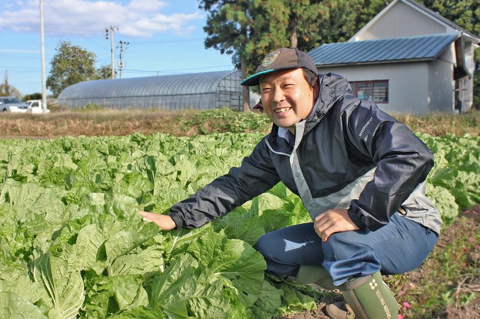 - 私の農業は、きゅうり栽培から始めました。きゅうり栽培が軌道になってきた頃に、次の作物を探していたところ、白菜を見つけました。白菜は種まき・苗植えの時期がメイン作物であるきゅうりの収穫時期のピークと重ならないとわかり、始めました。雪が降る頃に収穫し、独自の方法で鮮度を保ちながら、3月下旬まで販売できるというメリットもあります。現在、直売所での販売量のみを栽培しています。
