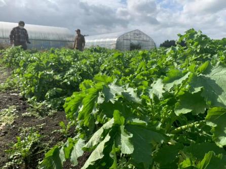 この北上川沿いに今回の生産者である渕澤さんの畑がある。今回は、朝ごはんプロジェクトのために栽培してもらった「おでん大根」を見るためにお邪魔した。 - 割れた大根