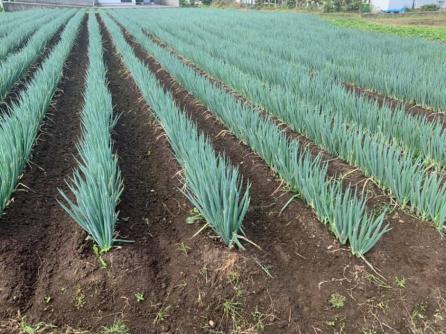 - 長ネギ畑はVegechuのすぐそばにある。広さ30アールの畑一面に、まっすぐ伸びた長ネギが整列している。素人目には十分に成長したように見えるが、収穫にはまだ半月から1か月以上かかるという。